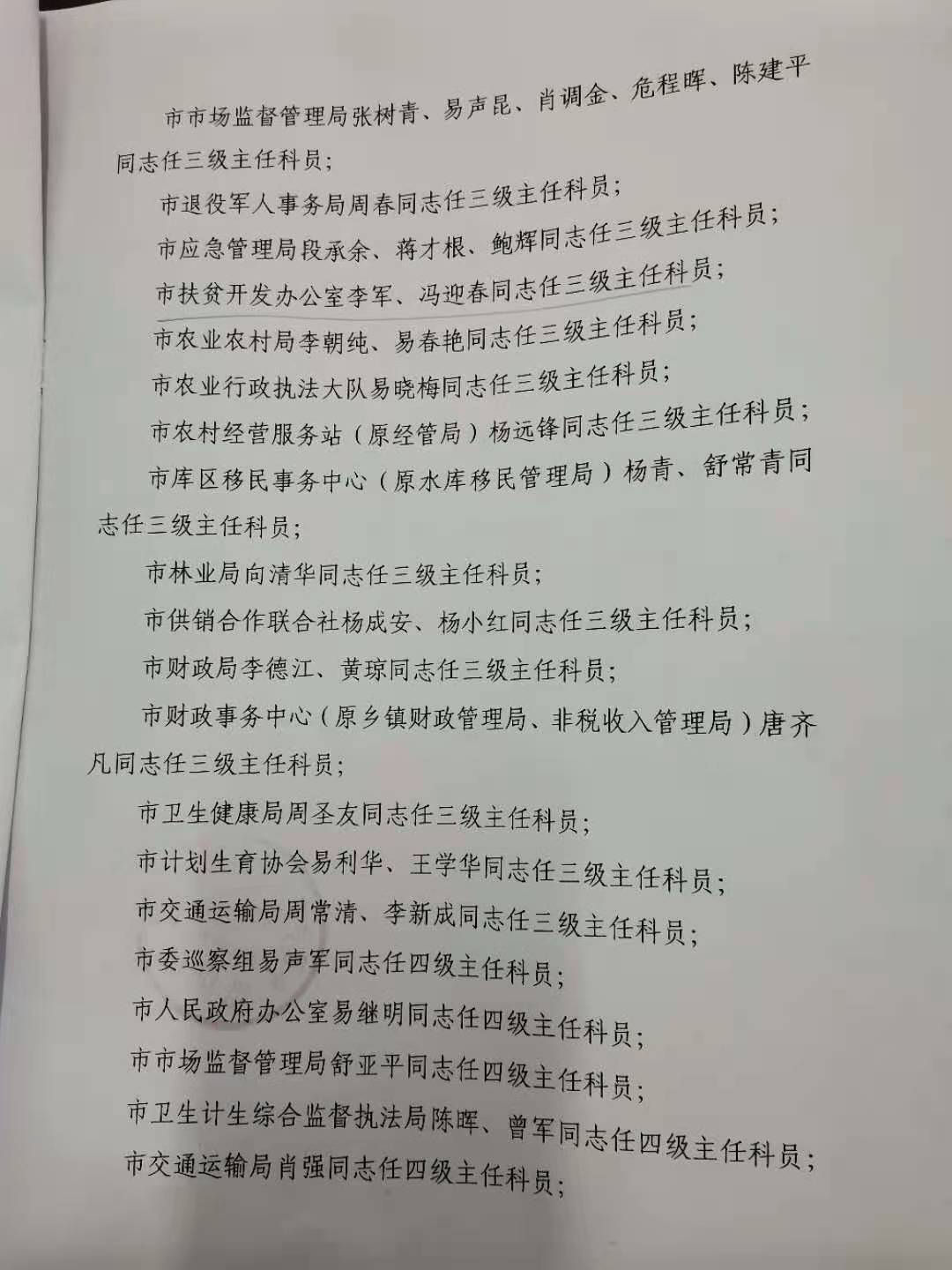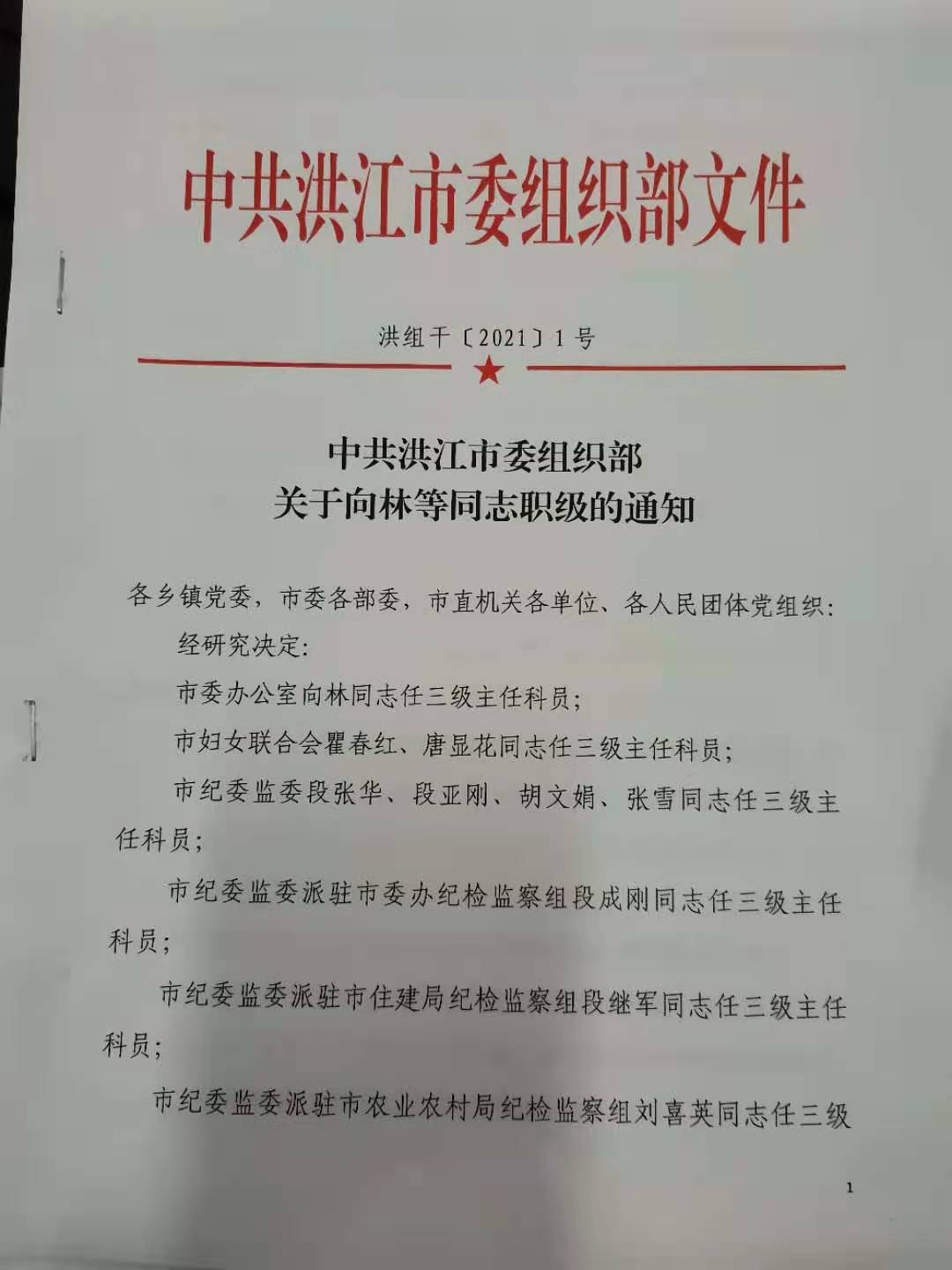 关于向林等同志职级的通知