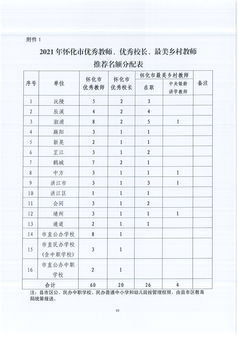关于组织开展怀化市优秀教师、优秀校长、最美乡村教师推选工作的通知